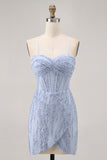 Sparkly Sequins Corset Grey Blue Bodycon Short Homecoming Dress