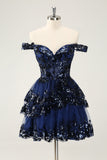 Cute Sparkly Hot Pink A Line Tiered Corset Lace Short Homecoming Dress