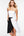 One Shoulder Black and White Midi Cocktail Dress with Slit