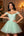 A Line Ruffled Mint Green Square Neck Midi Satin Work Dress