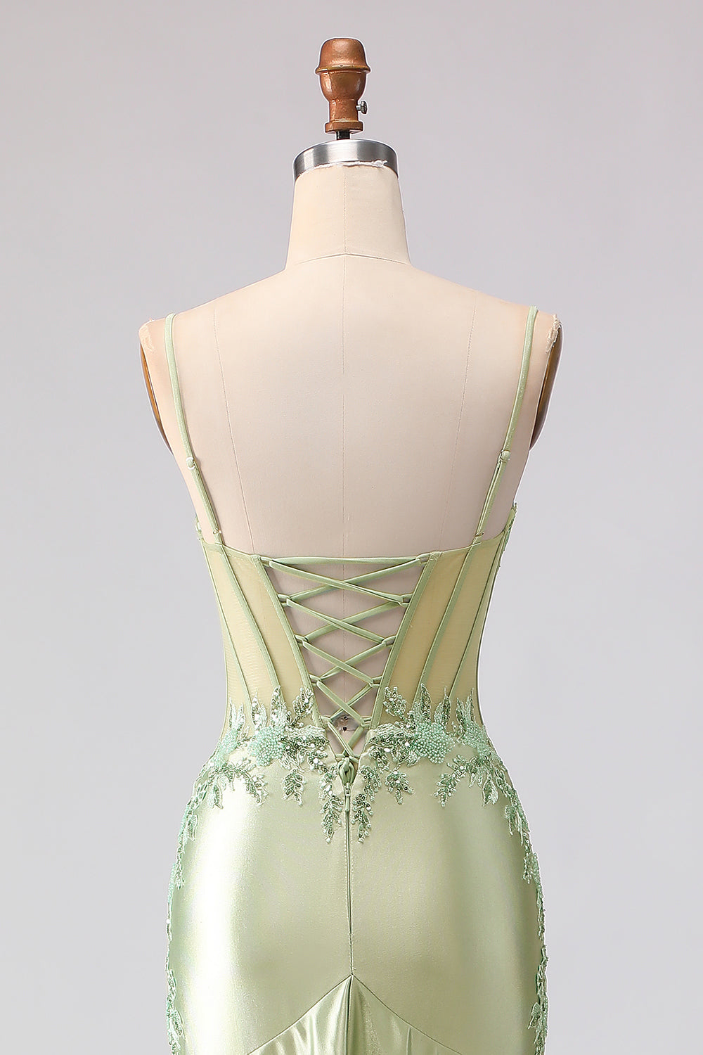 Light Green Mermaid Beaded Corset Ruffle Long Prom Dress with Lace Up Back