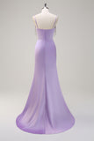 Lilac Mermaid Spaghetti Straps Ruched Corset Long Prom Dress With Beading