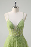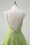 Sparkly Sequins Green Princess Spaghetti Straps Ruched Long Prom Dress