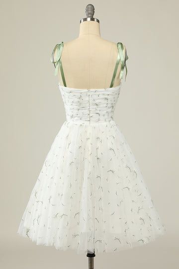 Stylish Spaghetti Straps White Short Homecoming Dress with Embroidery