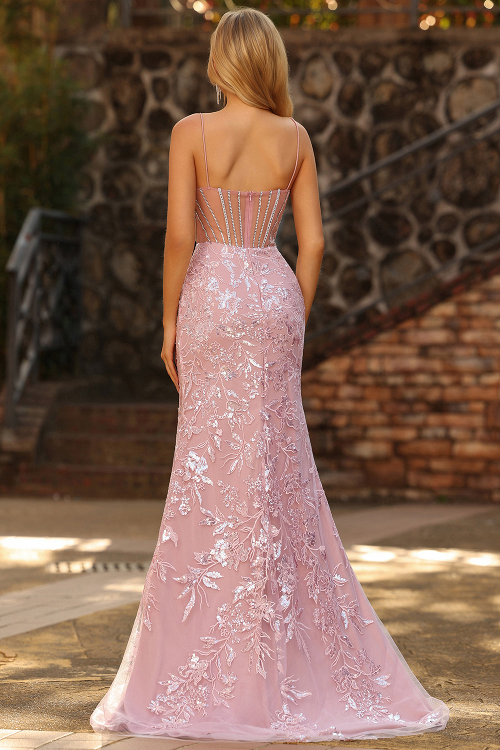 Sparkly Blush Mermaid Beaded Corset Long Prom Dress with Sequins