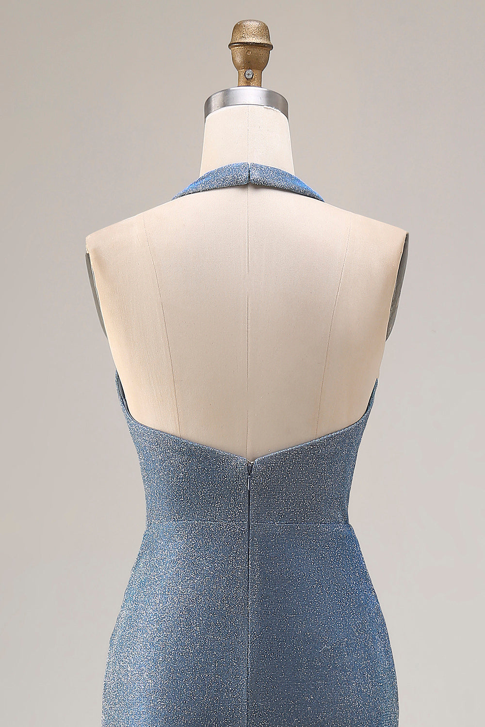 Dusty Blue Halter Mermaid Ruched Long Prom Dress with Slit