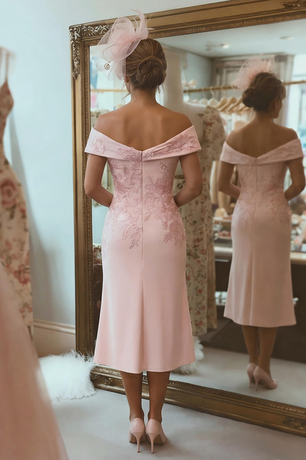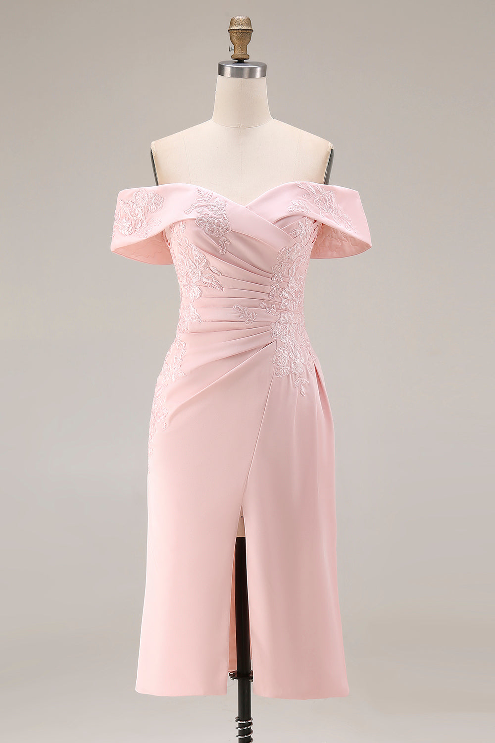 Blush Pink Sheath Off The Shoulder Mother Of The Bride Dress with Slit