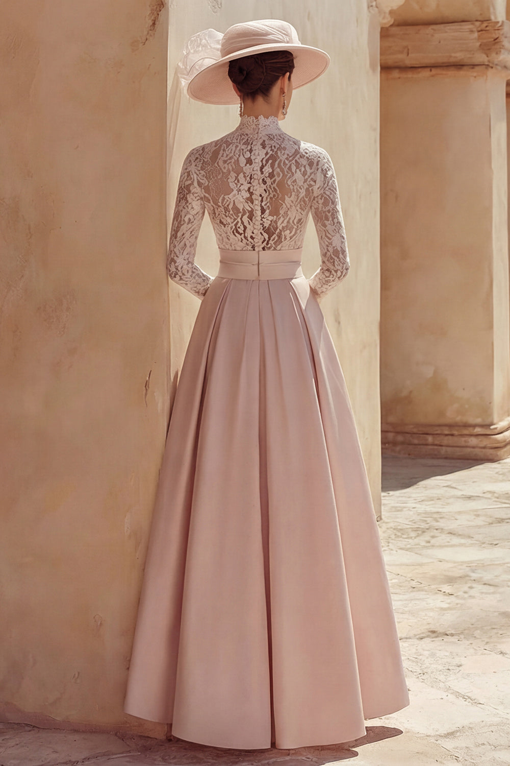 Candy Pink A Line High Neck Long Mother of the Bride Dress with Lace