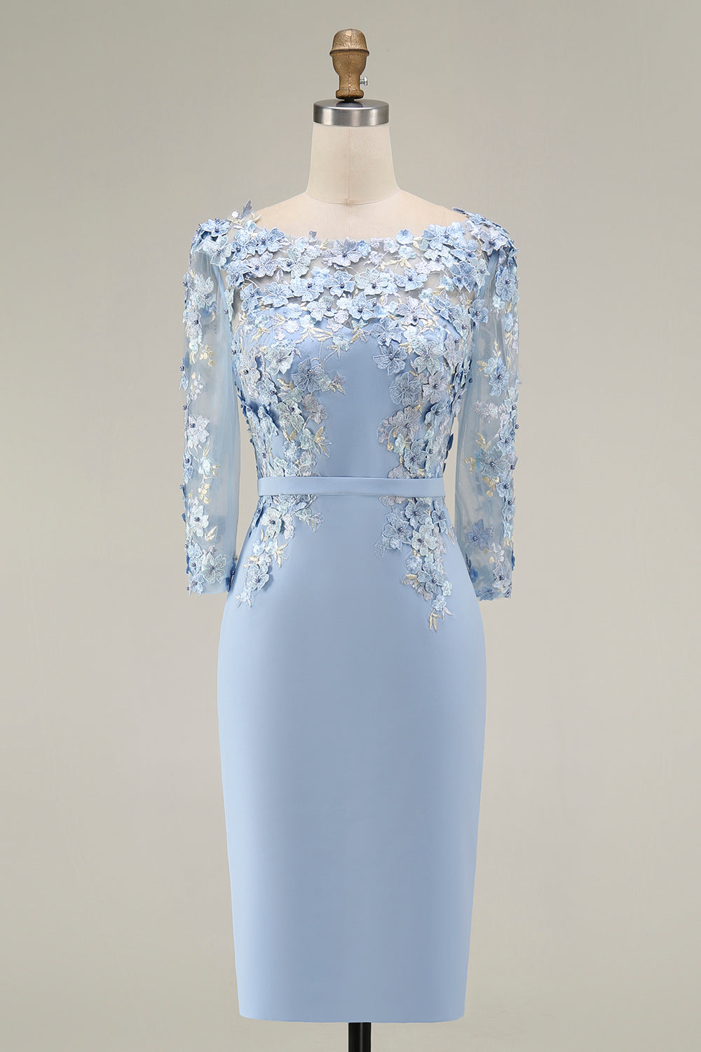 Bodycon Bateau Neck Appliqued Midi Mother of the Bride Dress with 3/4 Sleeves