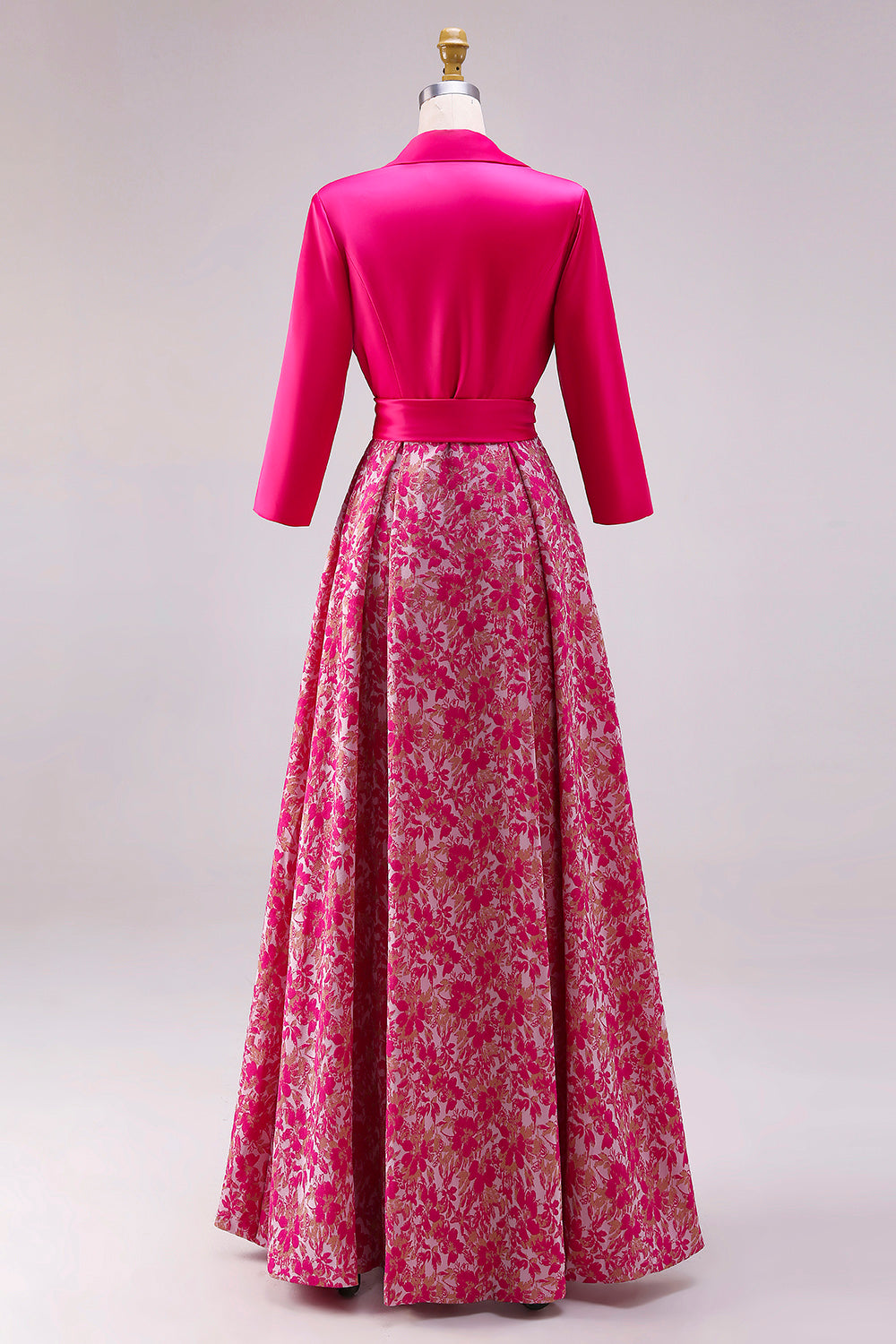 Fuchsia A Line Satin Floral Long Mother of the Bride Dress with Sleeves
