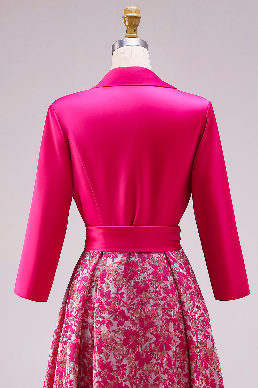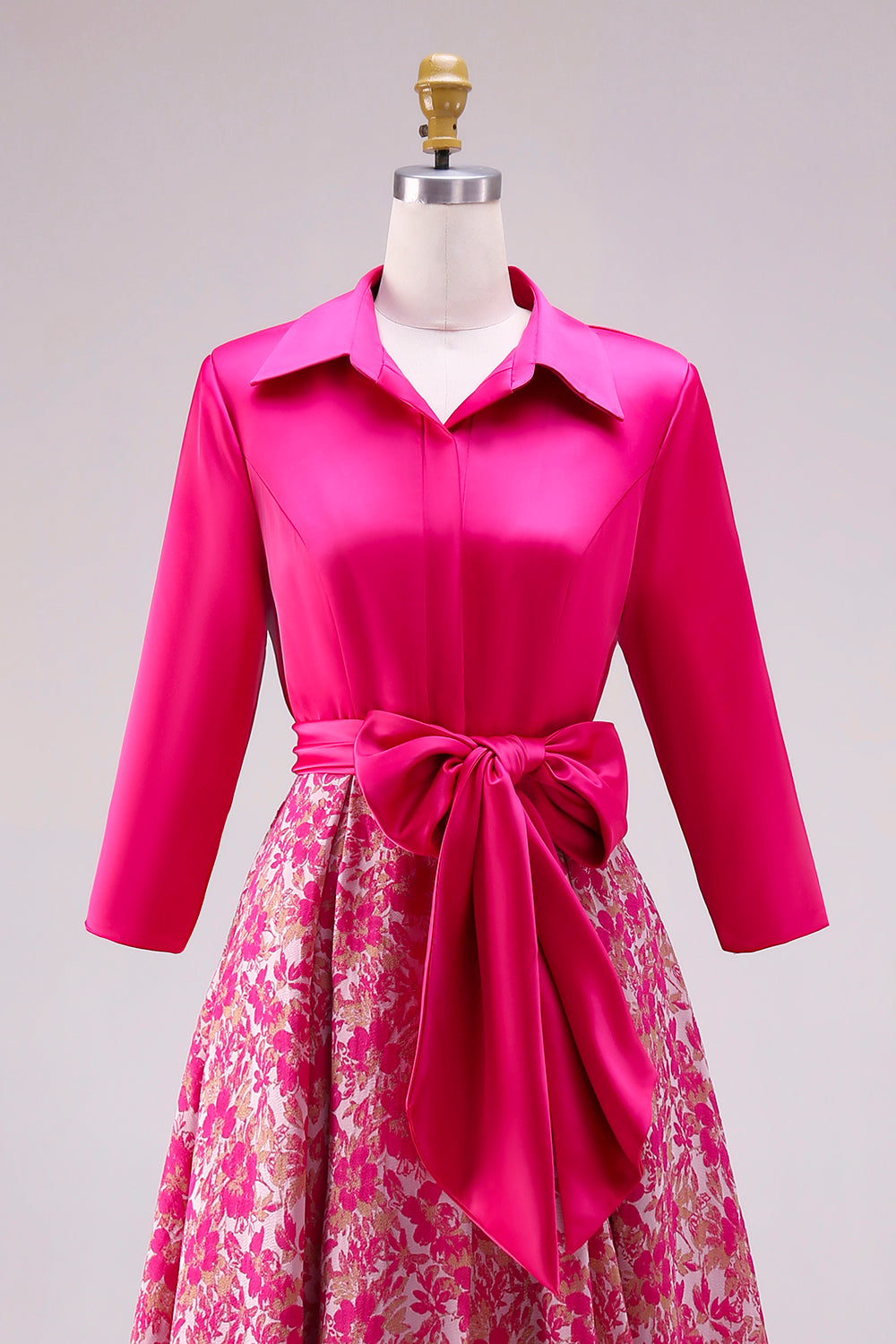 Fuchsia Floral A Line Satin Long Mother of the Bride Dress with Bowknot