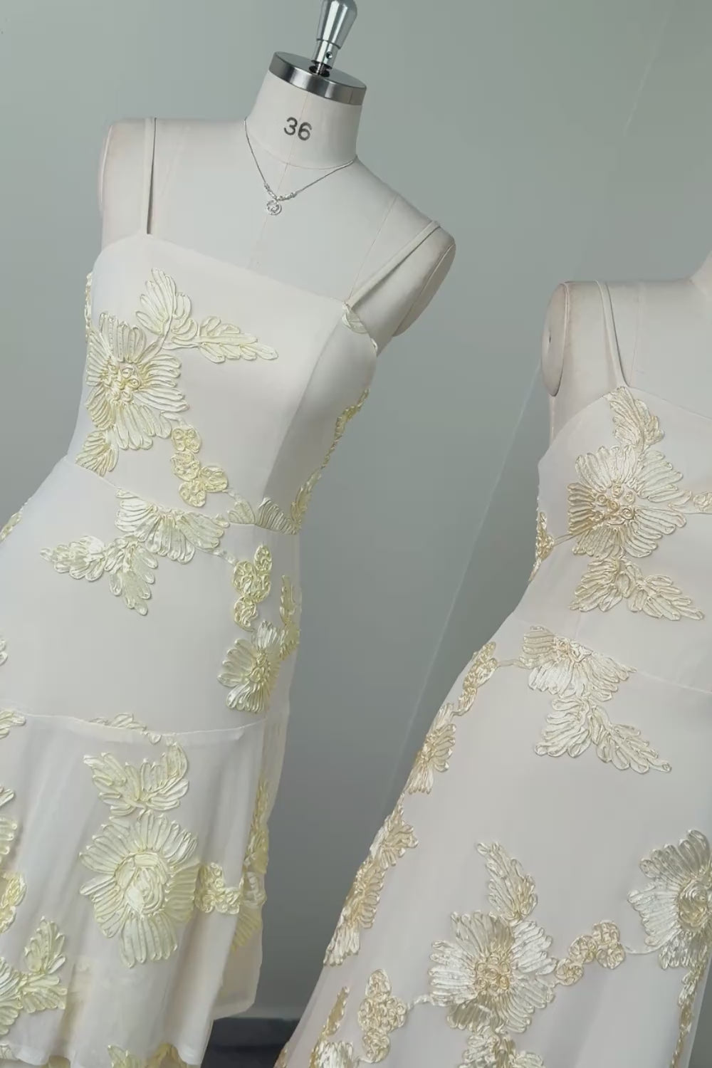 Yellow A-Line Spaghetti Straps Lace Up Back Long Prom Dress with Floral Embroidery