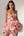 Pink Floral V-Neck A Line Tiered Short Homecoming Dress with Bow