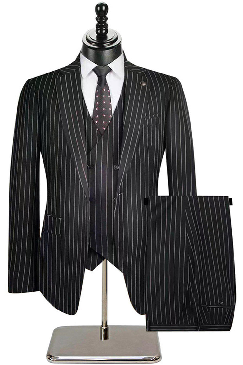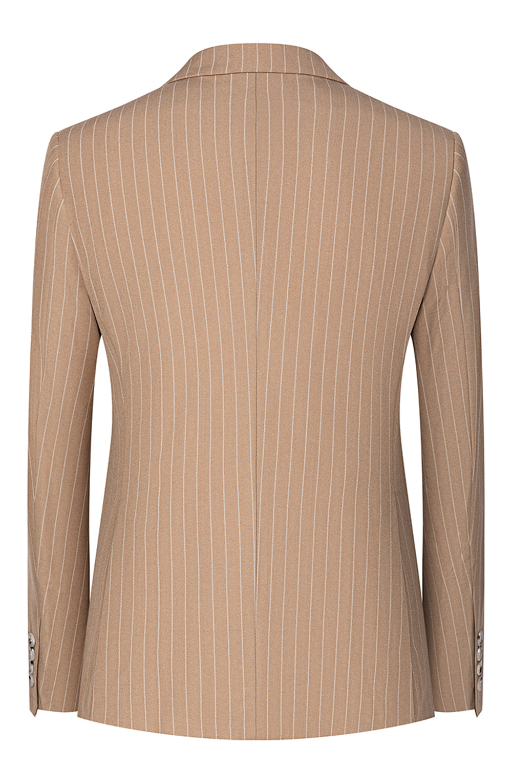 Beige Striped 3 Piece Notched Lapel Men's Suits