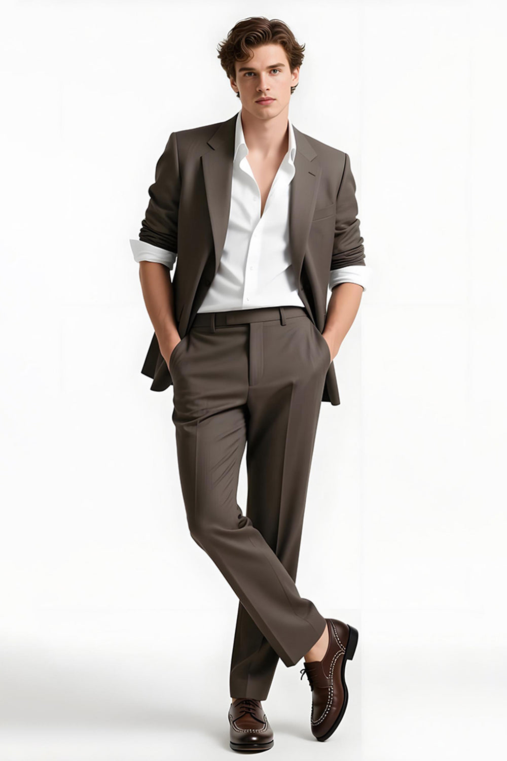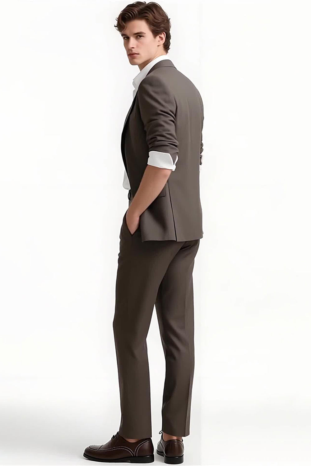 Grey Coffee 2 Piece Notched Lapel Men's Formal Suits