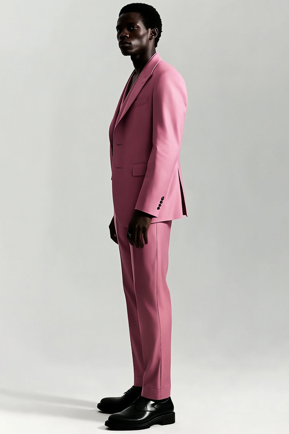 Grey Pink Peak Lapel Single Breasted 3-Piece Men Formal Suits