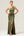 Olive V Neck Satin Sheath Wedding Guest Dress with Ruffles