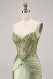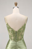 Green Strapless Corset Sequins Bodycon Short Homecoming Dress with Appliques