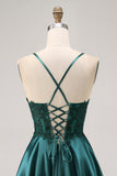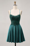 Dark Green A Line Appliqued Short Homecoming Dress with Beading