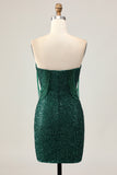 Sparkly Off The Shoulder Dark Green Bodycon Sequins Homecoming Dress