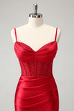 Light Green Spaghetti Straps Bodycon Corset Satin Homecoming Dress with Slit
