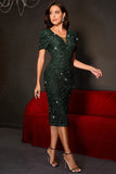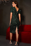 Sparkly Dark Green Tight Sequined Party Dress with Short Sleees