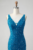 Sparkly Sage Bodycon V Neck Sequin Short Homecoming Dress with Tassel