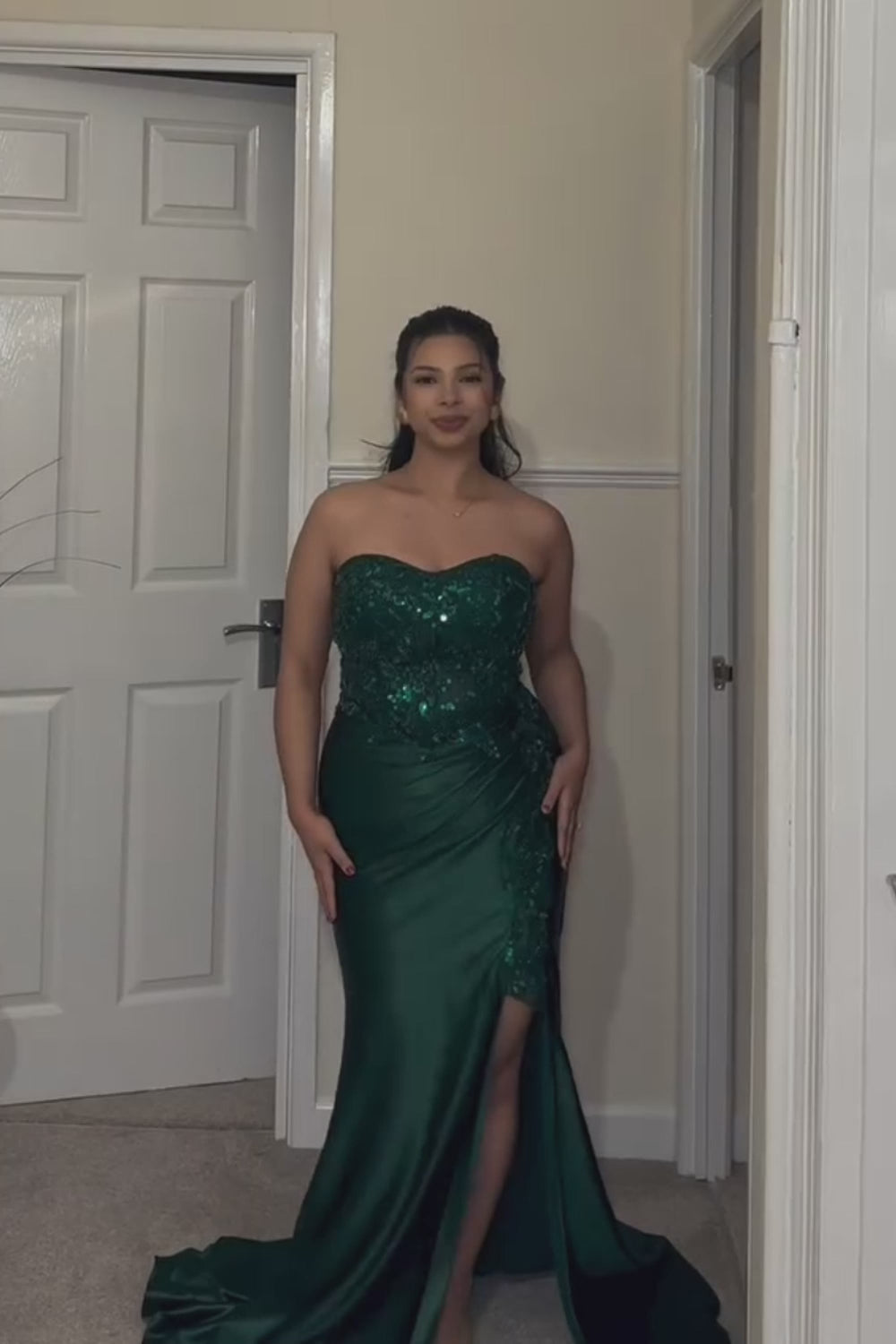Dark Green Strapless Mermaid Sequin Long Plus Size Prom Dress with Slit