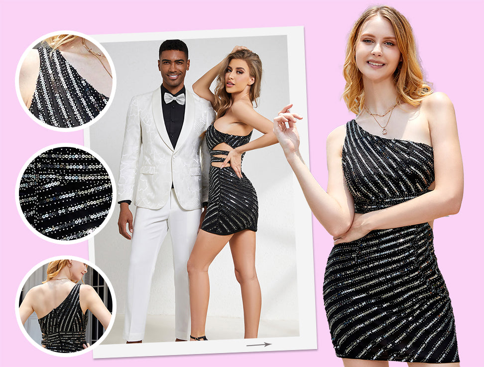Black Sequins One Shoulder Homecoming Dress with Hollow-out