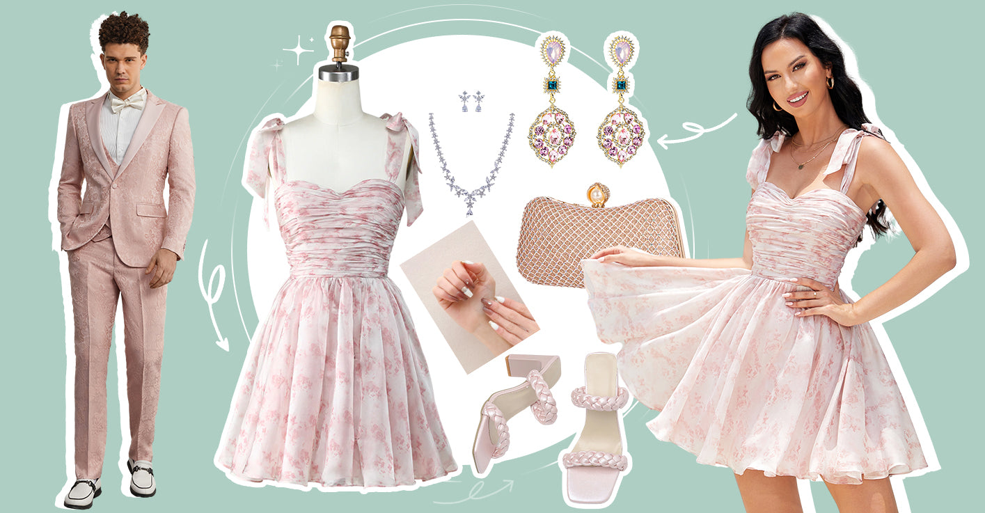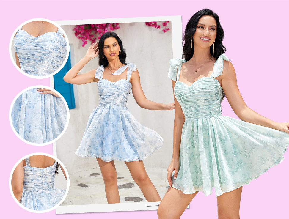 Unique A Line Spaghetti Straps Grey Pink Printed Short Homecoming Dress