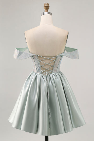 Light Green A-Line Off The Shoulder Corset Homecoming Dress with Beading