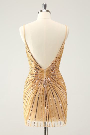 Golden Tight Spaghetti Straps Homecoming Dress with Sequins