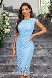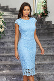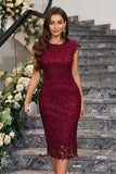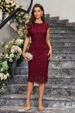 Burgundy Sheath Round Neck Lace Cocktail Dress