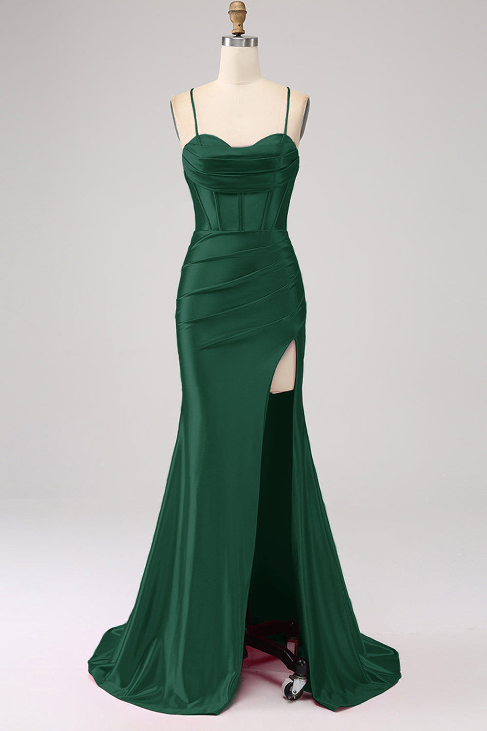 Stunning Red Mermaid Spaghetti Straps Corset Prom Dress with Split Front