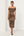 Brown Leopard Boat Neck Sheath Ruched Work Dress with Slit