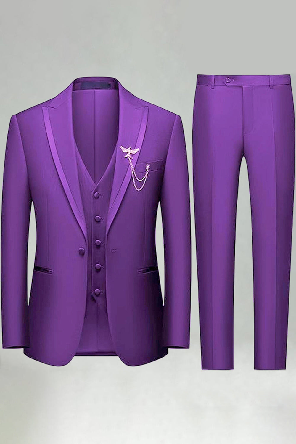 Black 3 Piece Peak Lapel One Button Men's Prom Suits