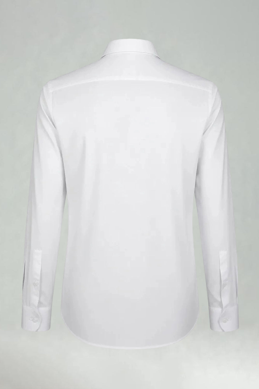 White Solid Long Sleeves Slim Fit Men's Suits Shirt