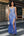 Blue Mermaid V-Neck Satin Long Appliques Sequin Prom Dress With Slit