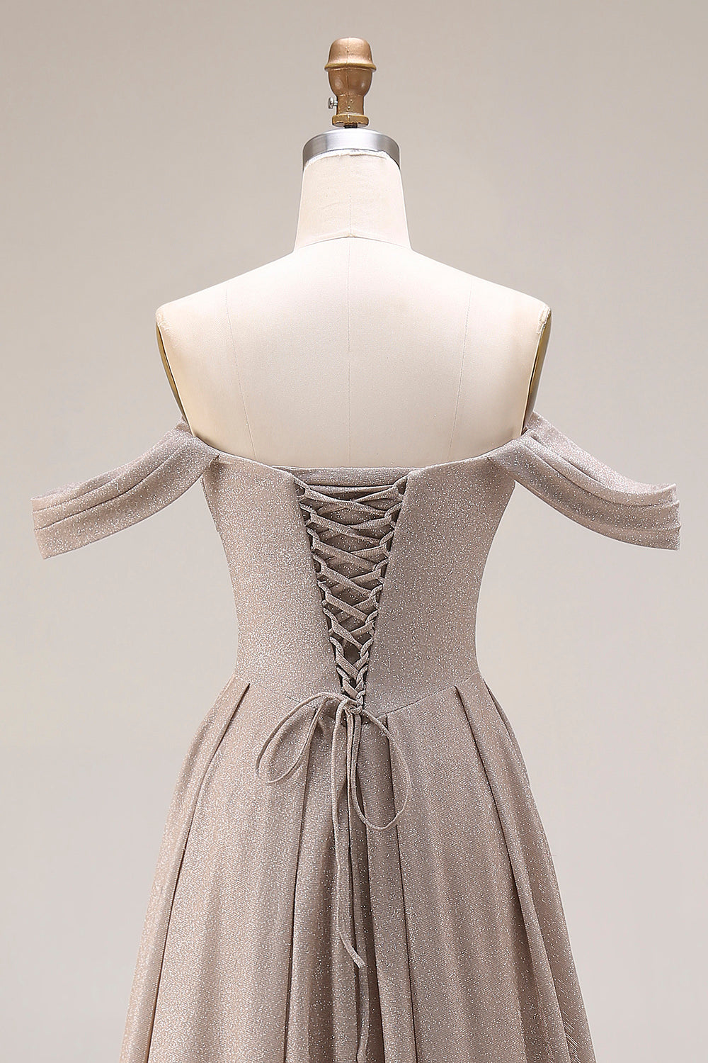 Grey Off The Shoulder Ruched Long Prom Dress with Lace Up Back