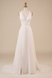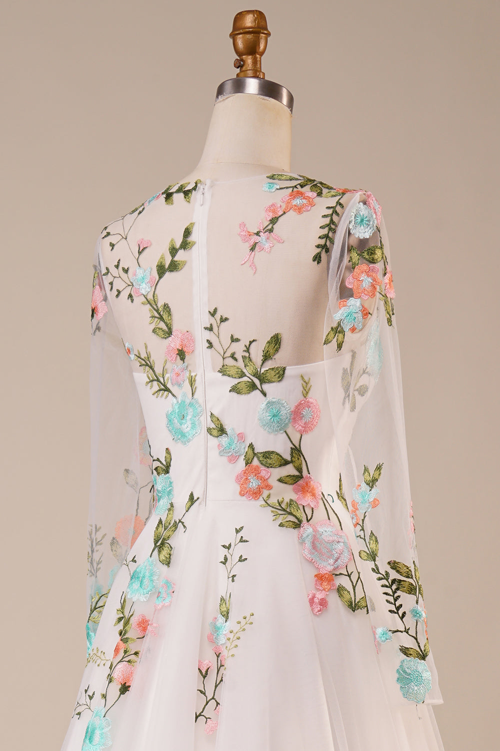 Tulle Long Sleeves Long Ivory Wedding Dress with Embroidery