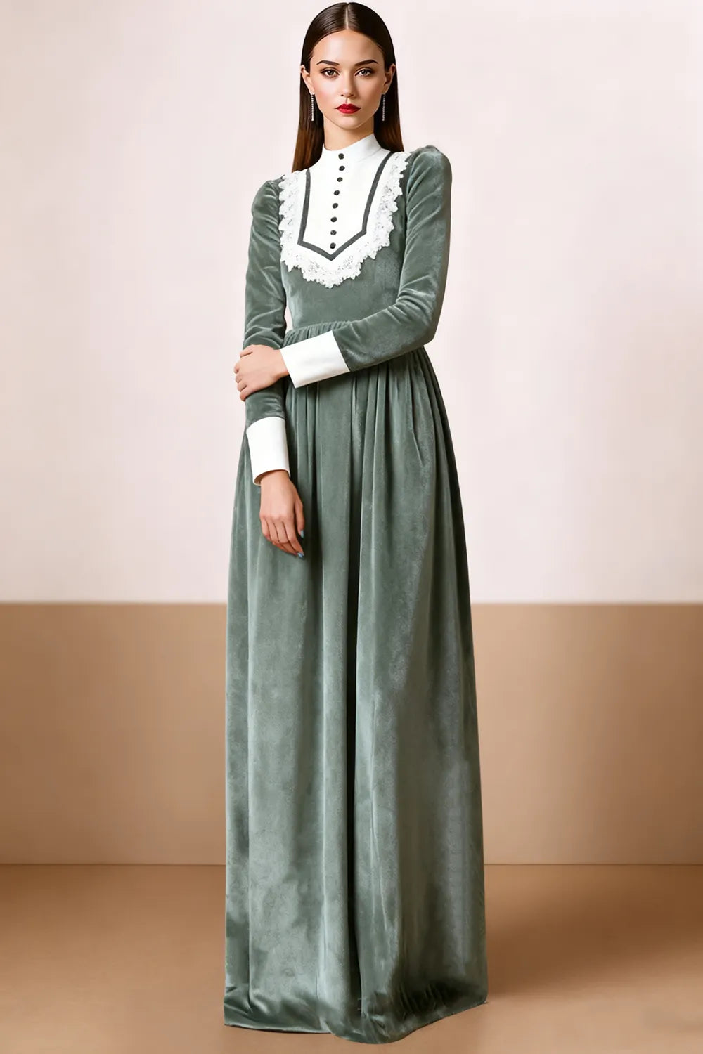Black and White Velvet A-Line High Neck Long Formal Dress