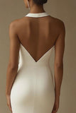 Mermaid White Keyhole Satin Wedding Dress with Slit