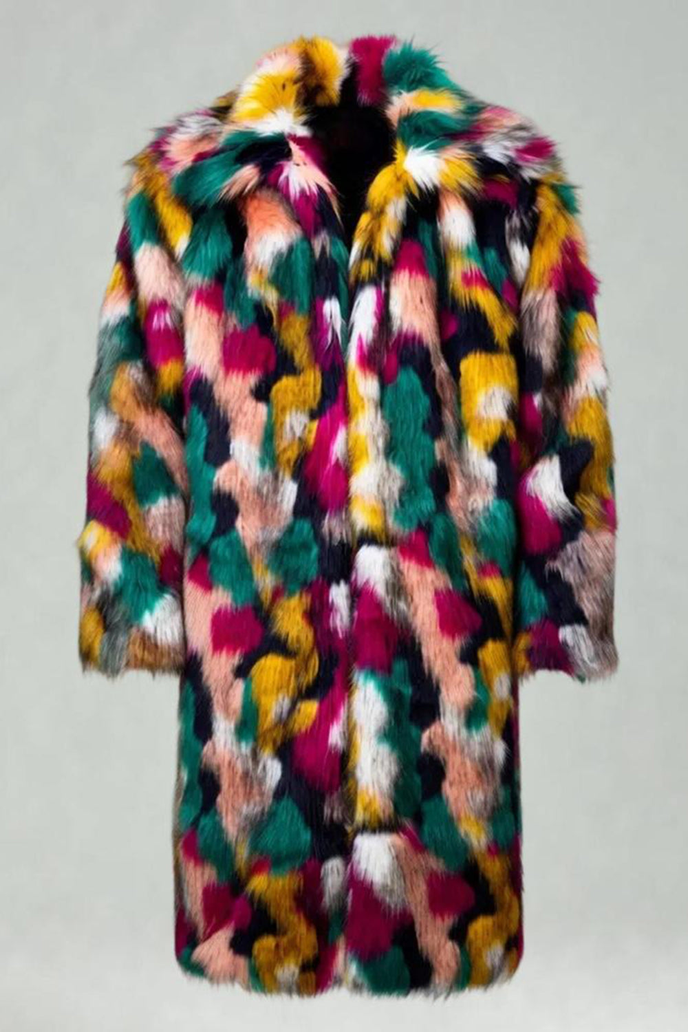 Thick Faux Fur Shawl Collar Colorful Men's Winter Coat