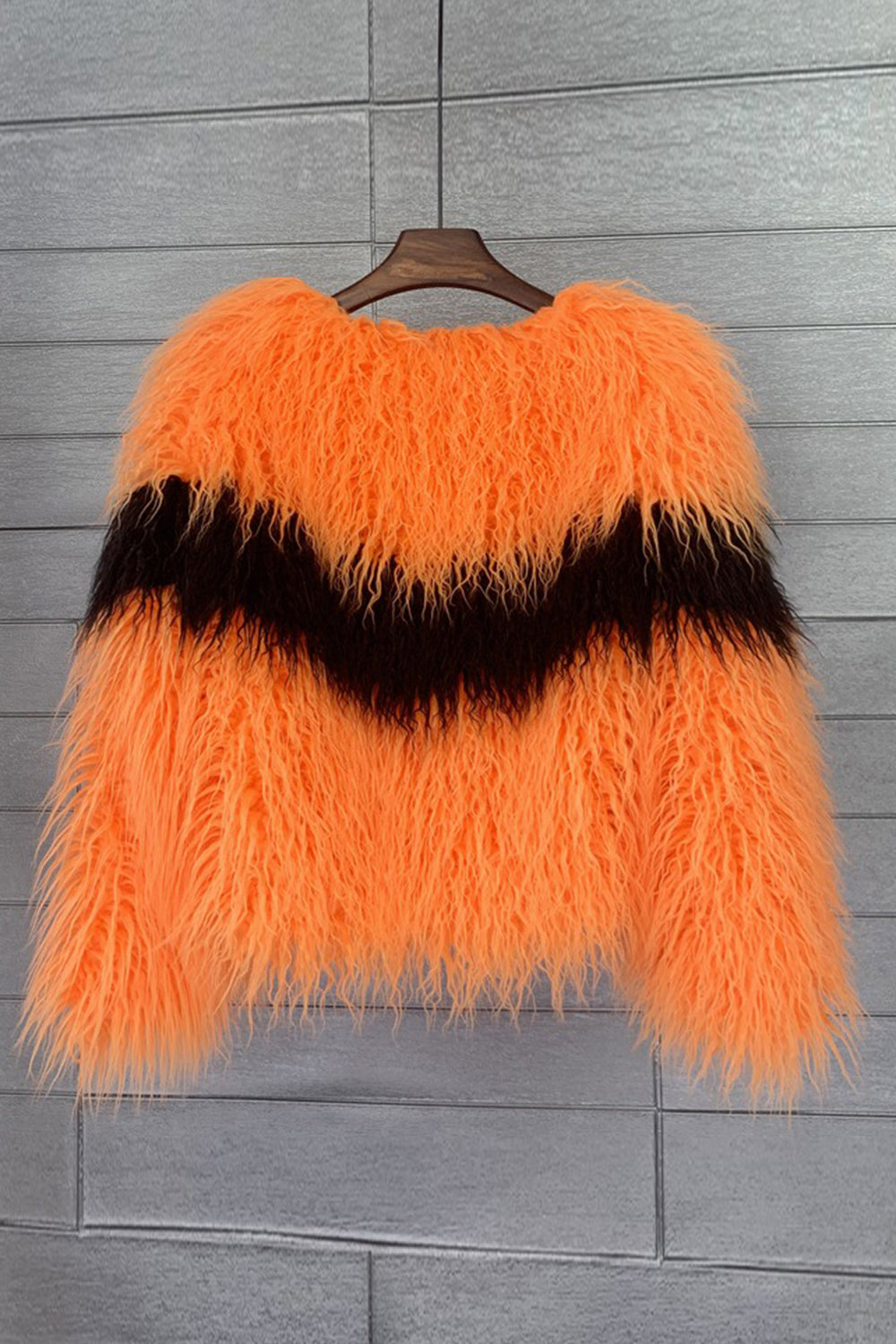 Shearling Faux Fur Coat Orange Thickened Women Coat