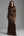 Coffee Satin V-Neck Long Sheath Formal Dress with Slit