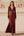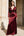 Burgundy Satin V-Neck Long Sleeves Formal Dress