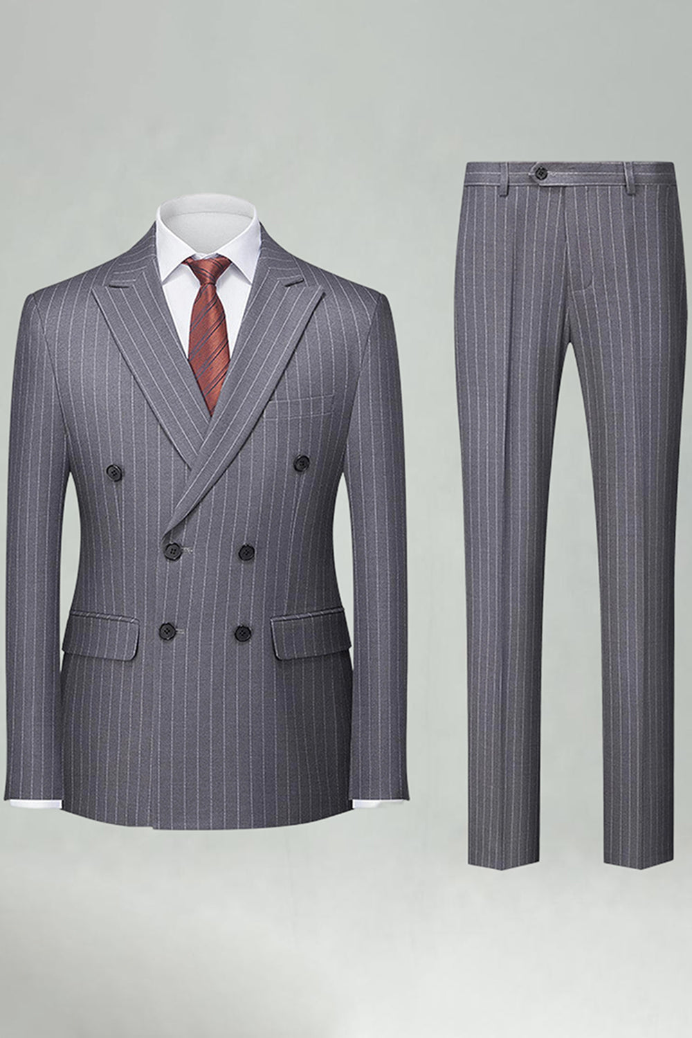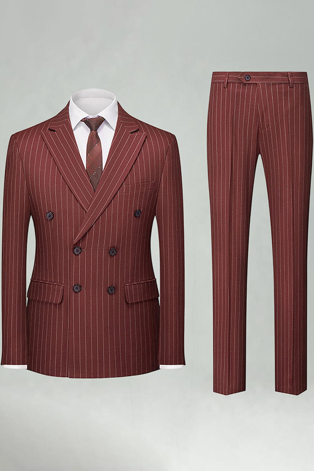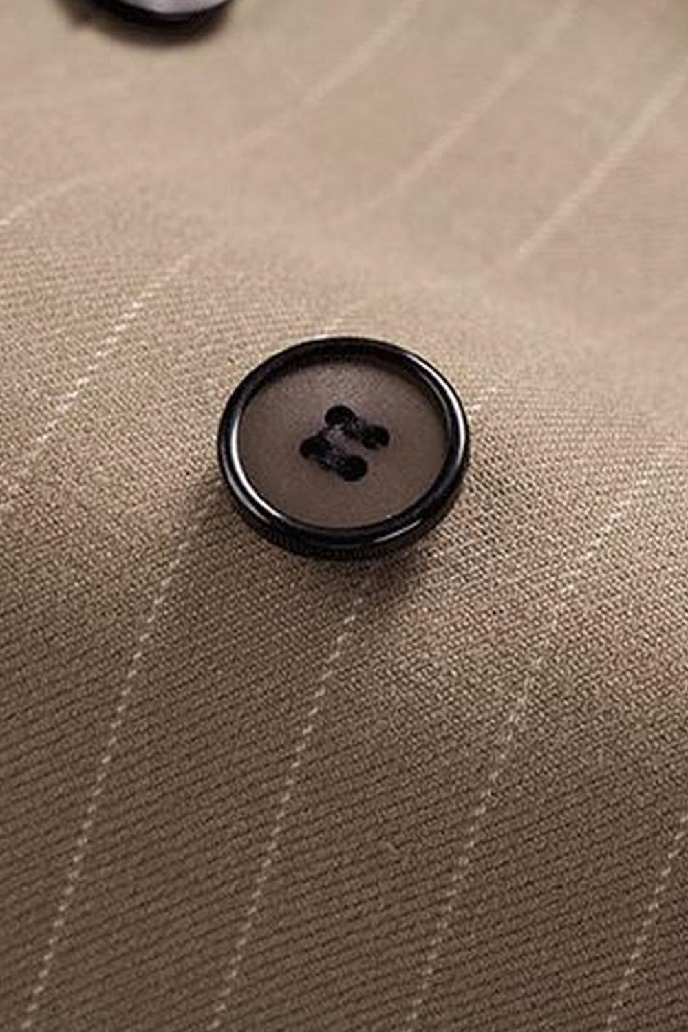 2 Piece Striped Double Breasted Khaki Men's Suits