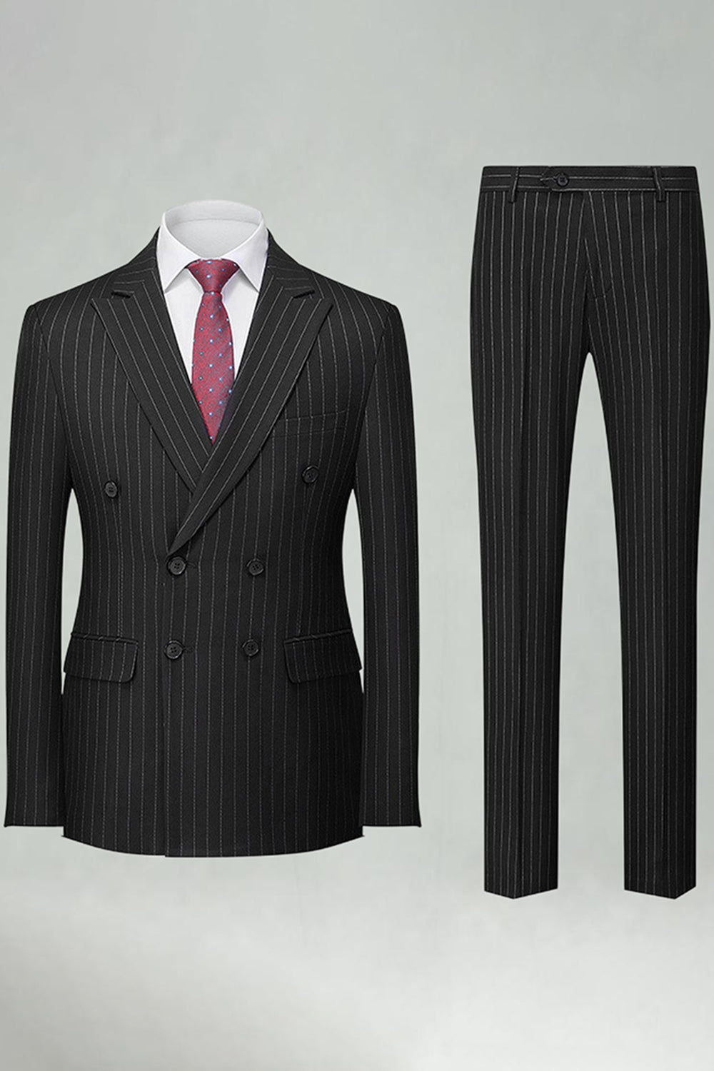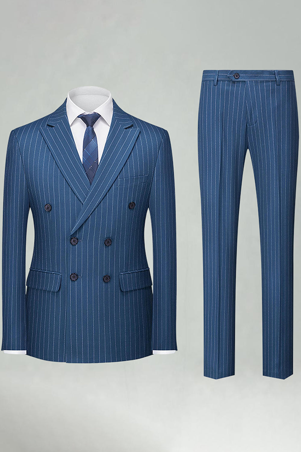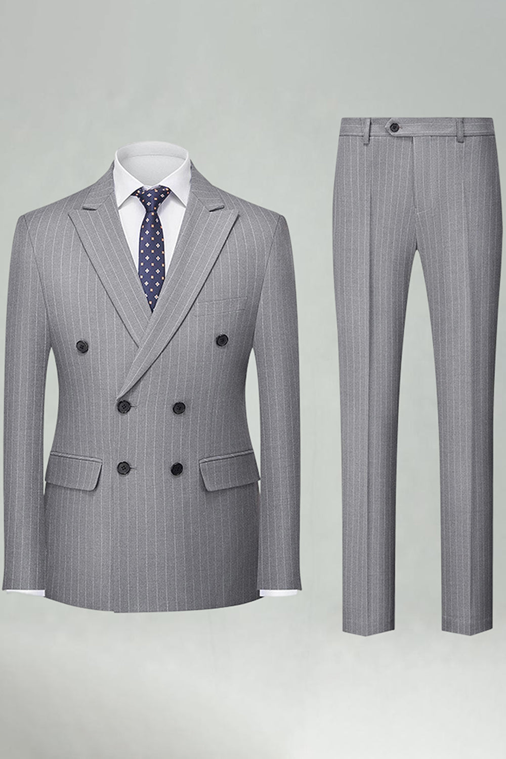 2 Piece Striped Double Breasted Khaki Men's Suits