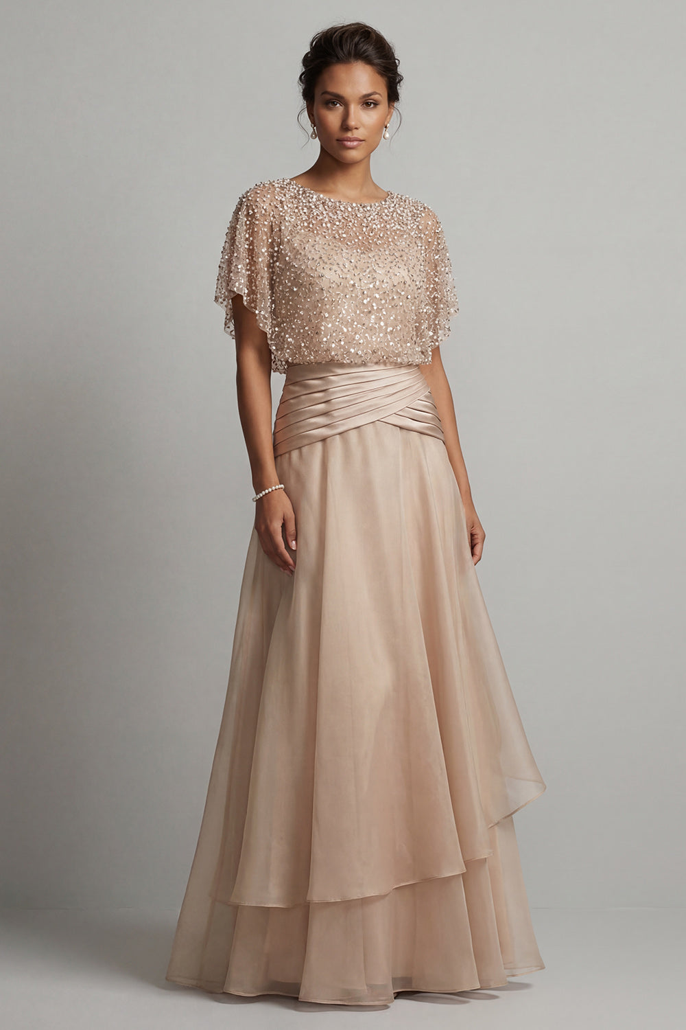 Champagne Sequin A Line Pleated Long Mother of the Bride Dress