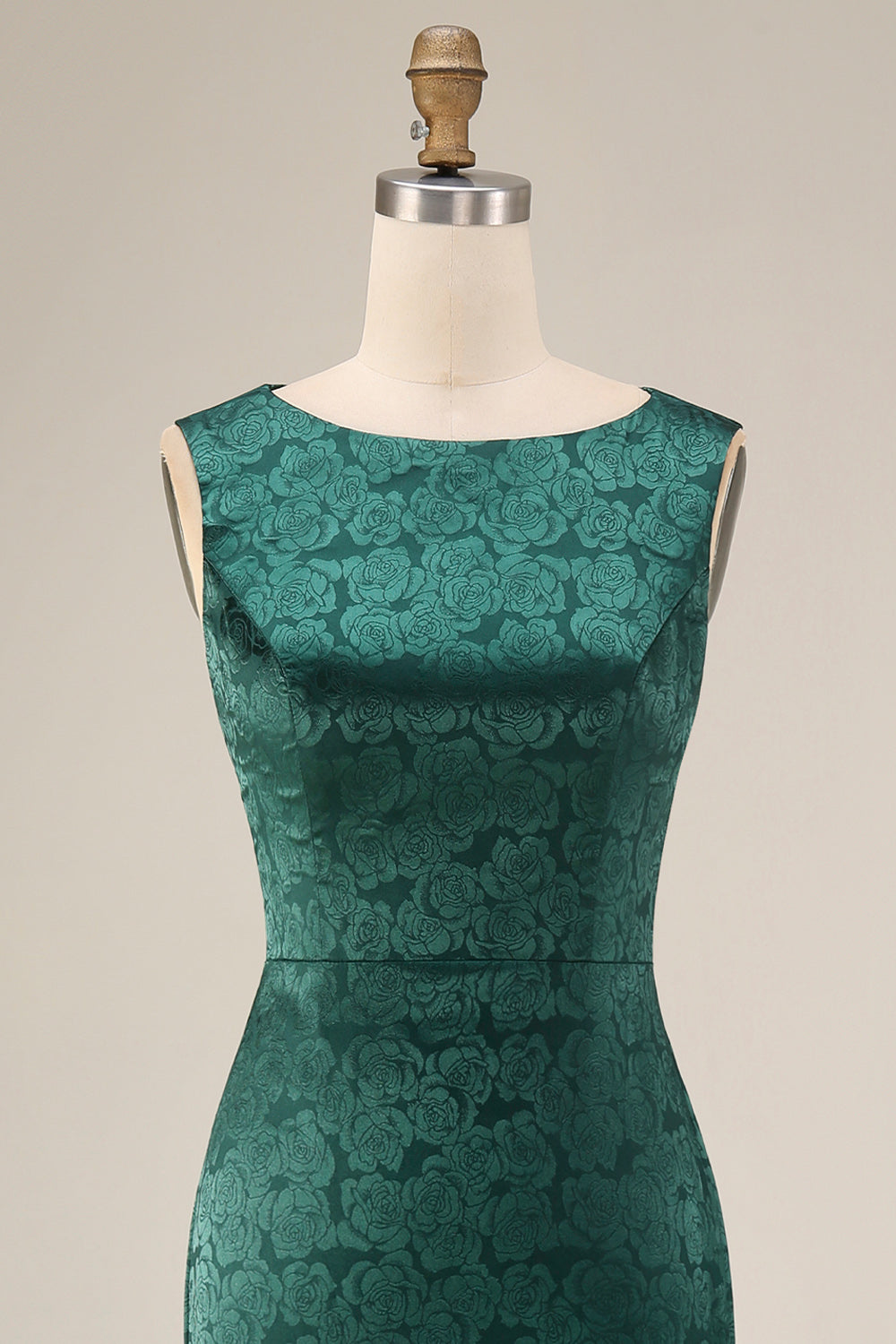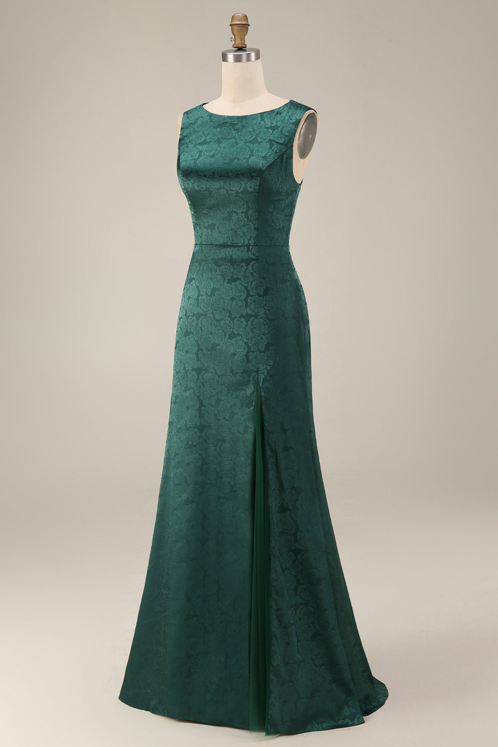 Dark Green Mermaid Bateau Neck Floral Long Mother Of the Bride Dress with Slit